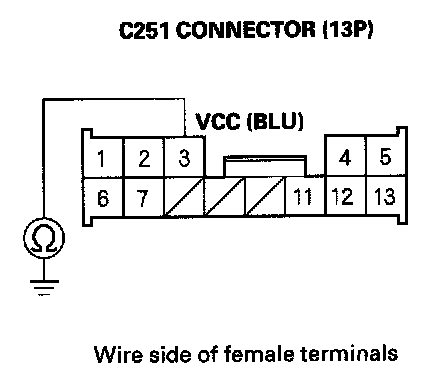 16. Check for continuity between C251 connector (13P) terminal No. 3 and body ground.