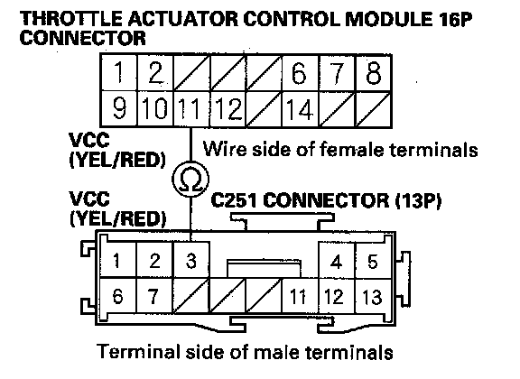 18. Check for continuity between throttle actuator control module 16P connector terminal No. 11 and C251 connector (13P) terminal No. 3.