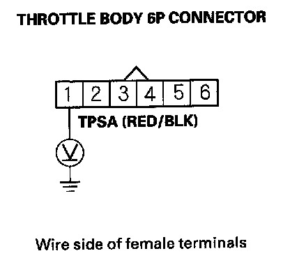5. Measure voltage between throttle body 6P connector terminal No. 1 and body ground.