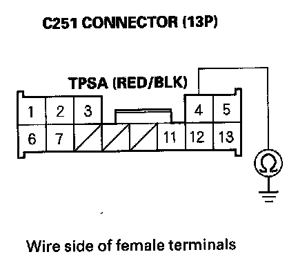 10. Check for continuity between C251 connector (13P) terminal No. 4 and body ground.