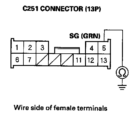 17. Check for continuity between C251 connector (13P) terminal No. 5 and body ground.