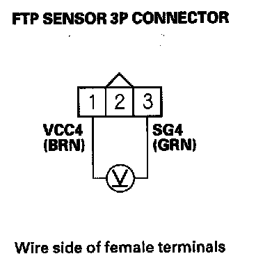 15. Measure voltage between FTP sensor 3P connector terminals No. 1 and No. 3.