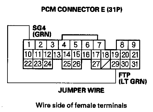 22. Connect PCM connector terminals E1 and E29 with a jumper wire.