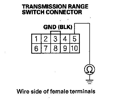 17. Check for continuity between transmission range switch connector terminal No. 5 and body ground.