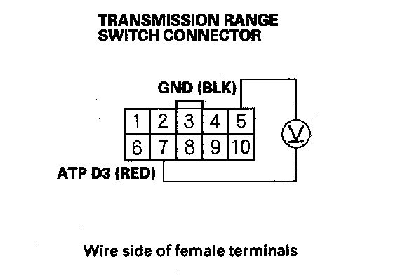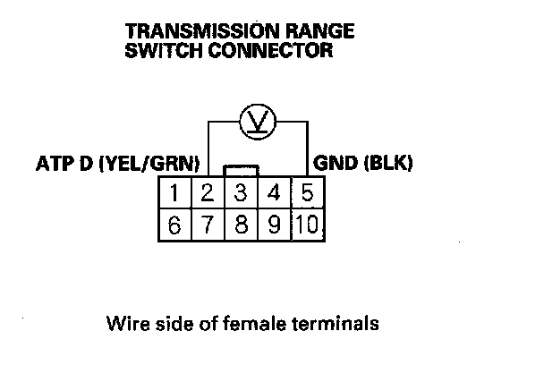 19. Measure the voltage between transmission range switch connector terminals No. 5 and No. 6.