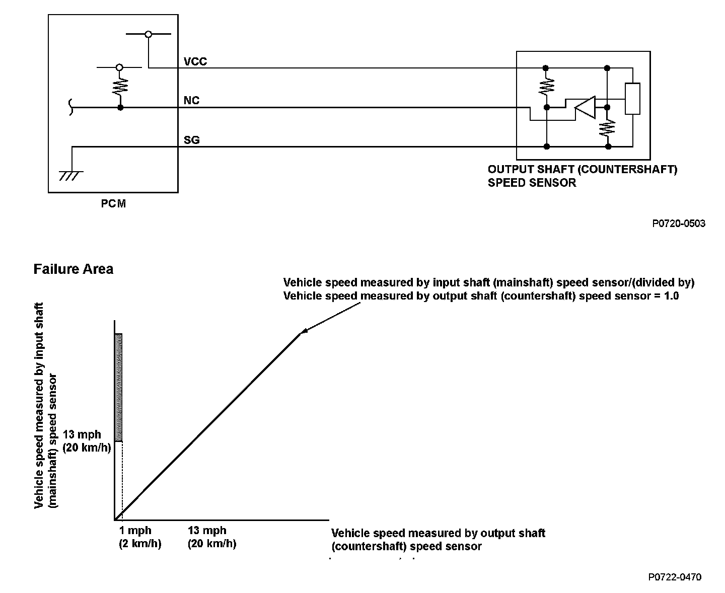 DTC P0722: Problem in Output Shaft (Countershaft) Speed Sensor Circuit (No Signal Input)General Description