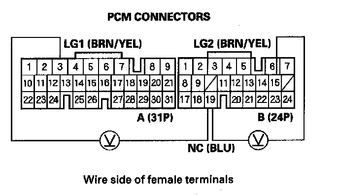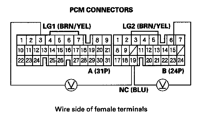8. Disconnect PCM connectors A (31P) and B (24P).