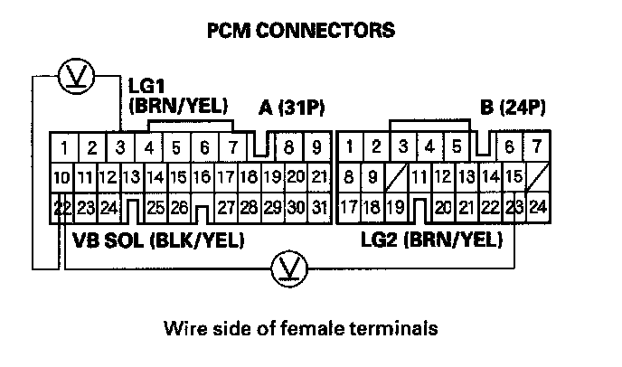 15. Disconnect PCM connectors A (31P) and B (24P).