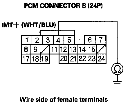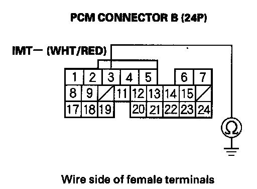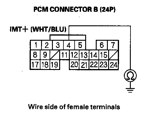 24. Check for continuity between PCM connector terminal B3 and body ground.