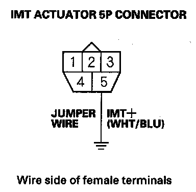 14. Connect IMT actuator 5P connector terminal No. 2 to body ground with a jumper wire.