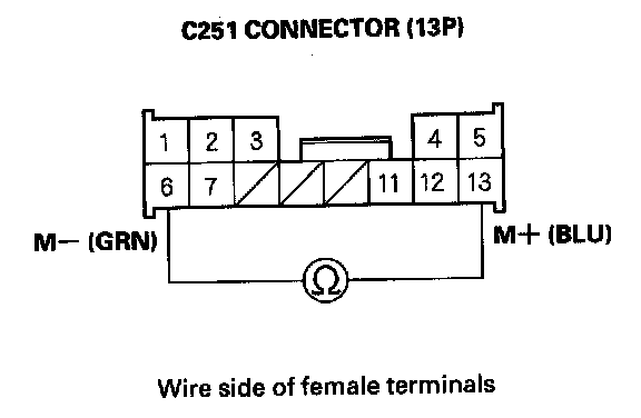 16. Check for continuity between C251 connector (13P) terminals No. 6 and No. 13.