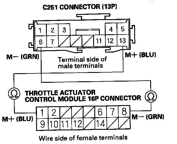 14. Disconnect the C251 connector (13P) between the PCM subharness and the throttle actuator control module subharness.