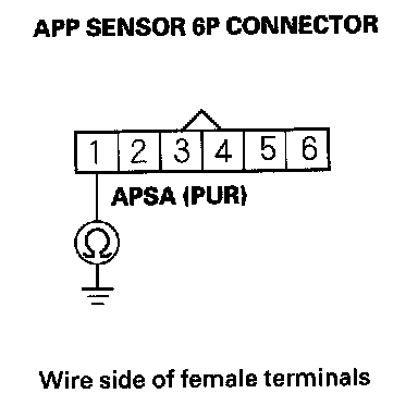 12. Check for continuity between APP sensor 6P connector terminal No. 1 and body ground.