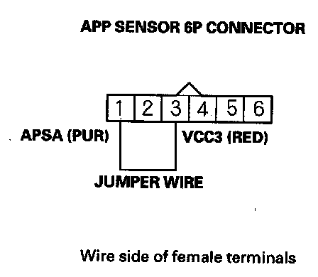14. Connect APP sensor 6P connector terminals No. 1 and No. 3 with a jumper wire.