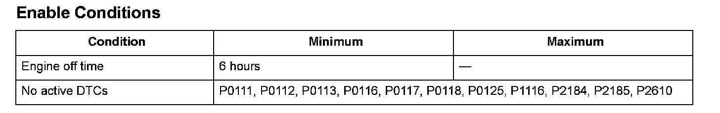 A malfunction is detected if these three conditions are not present after the engine and the ignition switch have been off for at least 6 hours before restarting the engine.