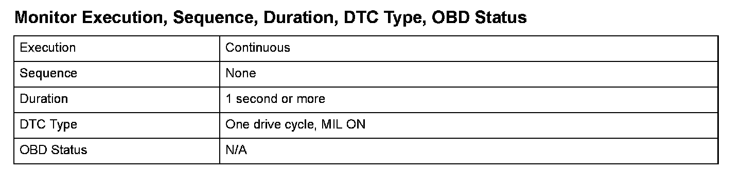 Monitor Execution, Sequence, Duration, DTC Type, OBD Status