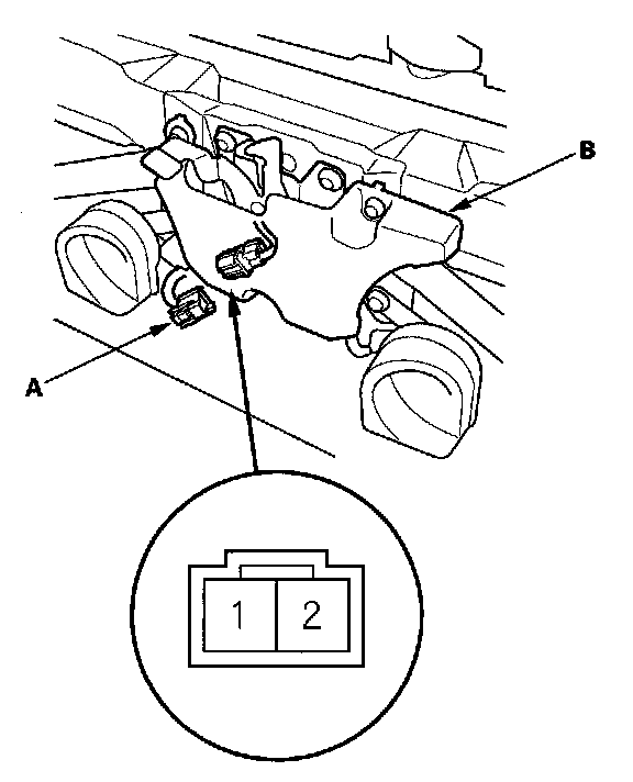 2. Disconnect the 2P connector (A) from the hood switch (B).