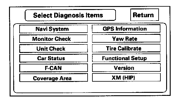 3. After the display changes to the Select Diagnosis Items menu, select the item you want to check and the diagnostic will start. To return to the previous screen, select "RETURN".