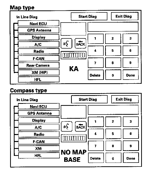 When a navigation control unit is powered up for the first time at the factory, the "factory diagnosis" screen (In Line Diag) shows up. Normally the factory performs the steps necessary to verify proper operation and terminate the "factory diagnostic".