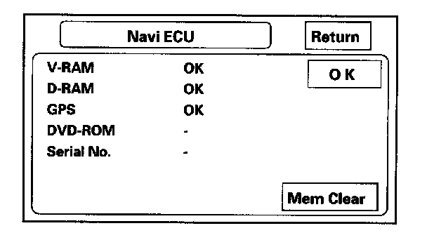 - If "V-RAM" or "D-RAM" is NG, then replace the navigation unit.