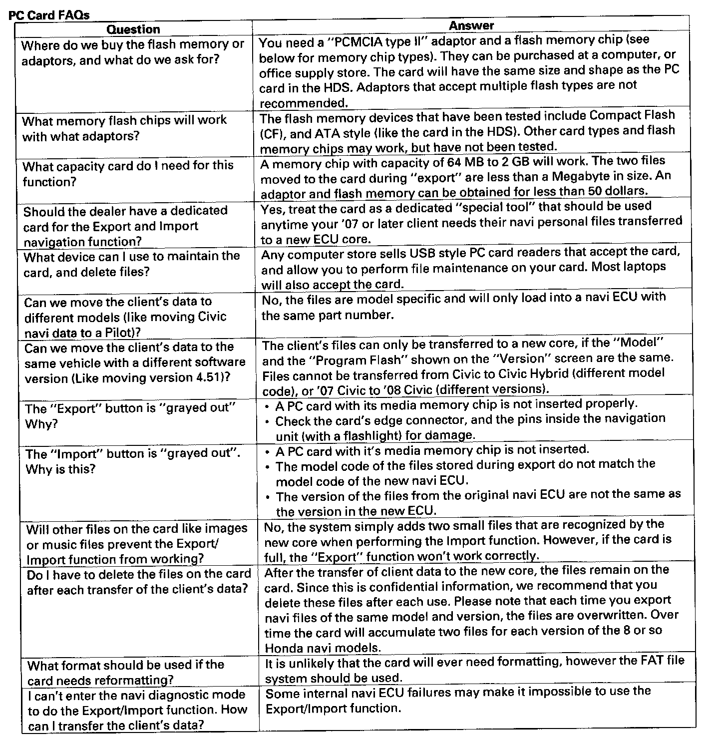 If the Import button is grayed out, follow the troubleshooting in the FAQs below. The client's files can only be transferred to a new core if the "Model" and the "Program Flash" shown on the "Version" screen are the same. So files cannot be transferred from Civic to Accord, or from a Civic with version 1.07.00 to a Civic with version 1.32.00.