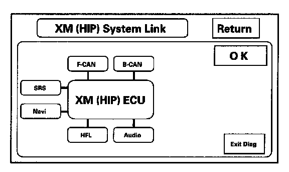 These screens allow troubleshooting on XM or HIP (AcuraLink) problems. Select the item you want to troubleshoot, and follow the diagnostic instructions.