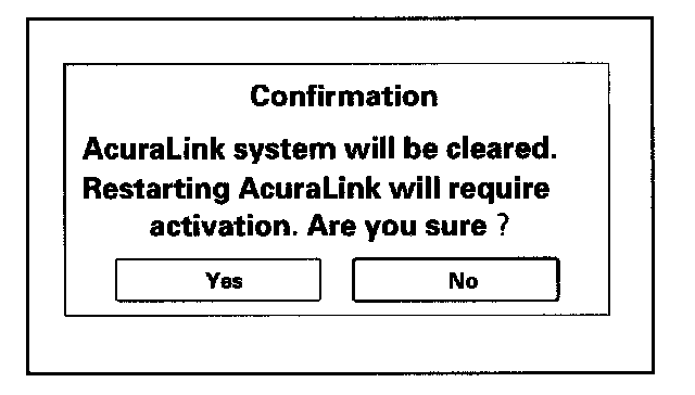 This menu choice resets the AcuraLink control unit (XM receiver), and should not be selected. Only select "DATA RESET" if instructed to do so by the factory. If chosen accidentally, a confirmation screen appears to prevent accidental erasure. Select "No" to exit the screen.