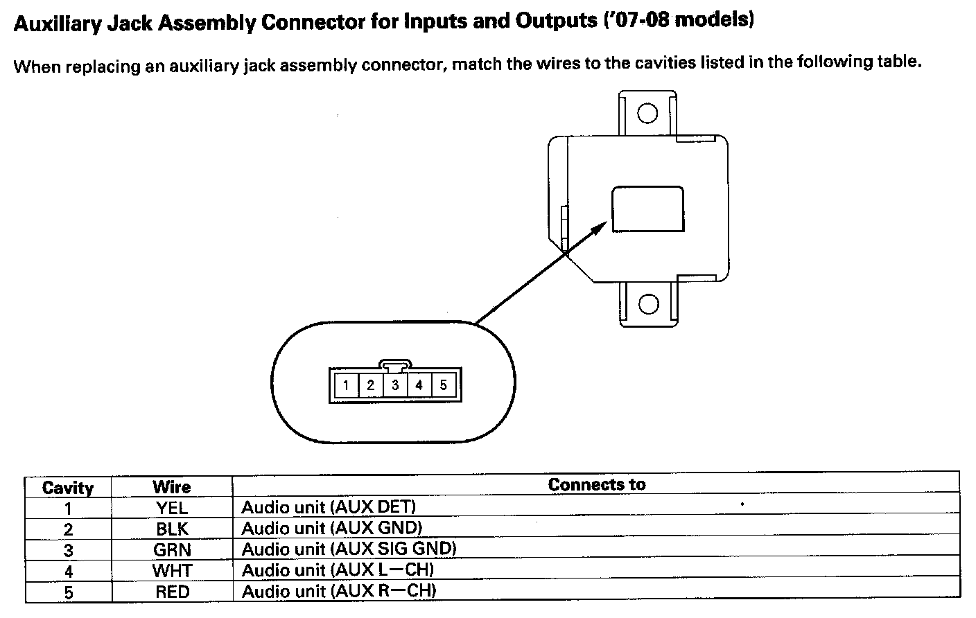 Auxiliary Jack Assembly Connector for Inputs and Outputs ('07-08 models)