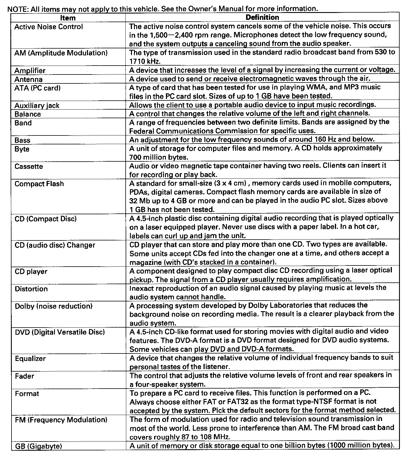 The audio unit acts as the "processor" for all audio functions. You can select of the audio functions from the front panel, the audio remote (on steering wheel), or by using the navigation voice control system. The audio display provides the current front and rear audio status. For vehicles with the navigation option, additional audio information is available by touching the audio button. (See the owner's manual for more details.)