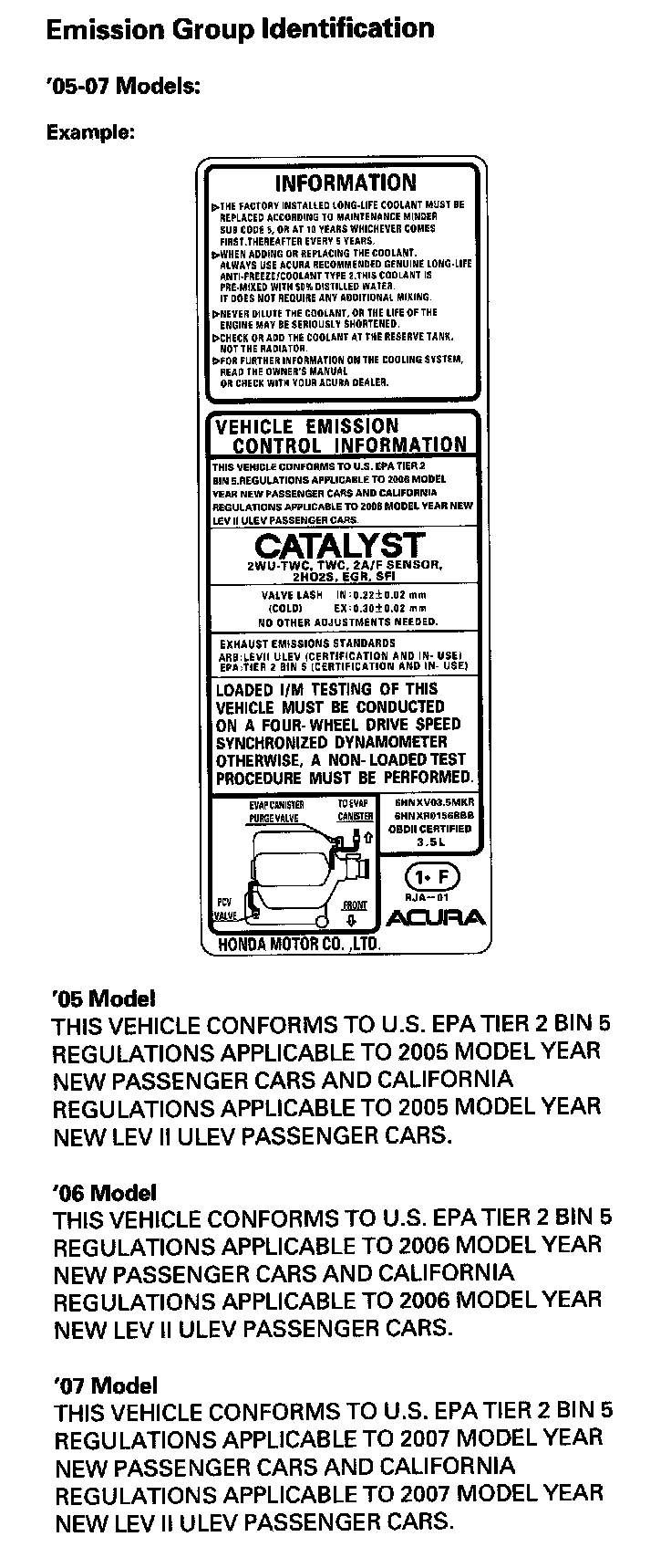 Under-Hood Emission Control Label