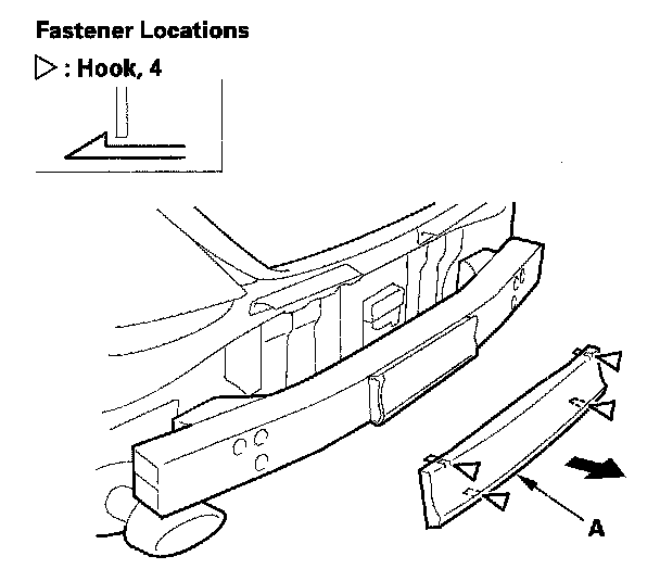 5. Release the hooks, then remove the rear bumper absorber (A).