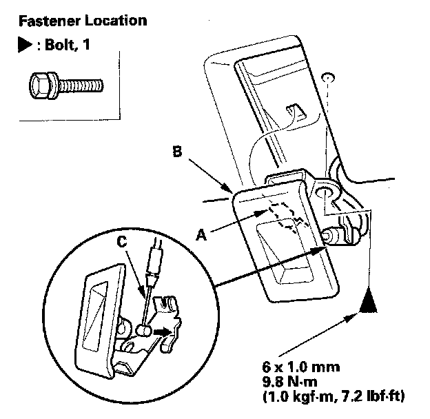 Hood Release Handle Replacement1. Remove the bolt, and release the hook (A), then remove the hood release handle (B) from the dashboard.