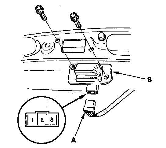 2. Disconnect the 3P connector (A) from the trunk lid outer handle switch (B).
