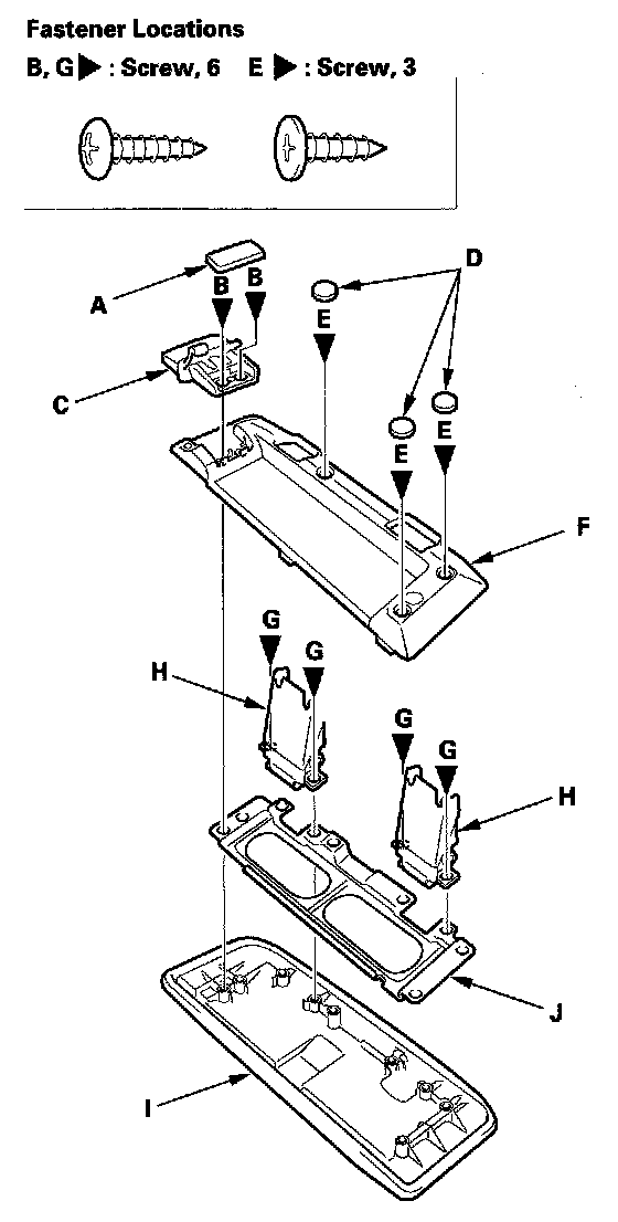 4. Remove the screws (G), then remove the armrest hinges (H) and armrest lid (I) from the armrest lid bracket (J).