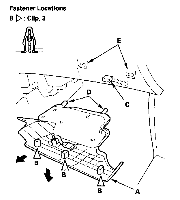 1. Gently pull down the front edge to detach the clips (B).