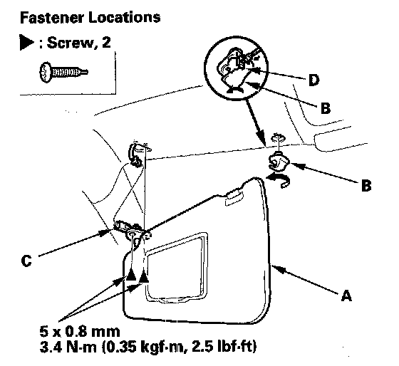 - If the threads on a visor screw are worn out, use an oversized self-tapping ET screw P/N 90137-S30-003 made specifically for this application.