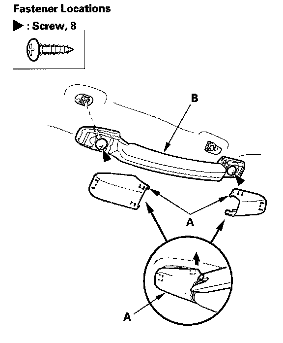 9. If necessary, remove the clips (A) from the grab handle brackets (B).