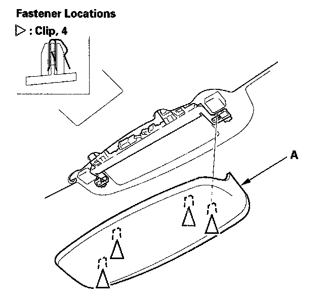 5. Remove the clips, then remove the high mount brake light cover (A).