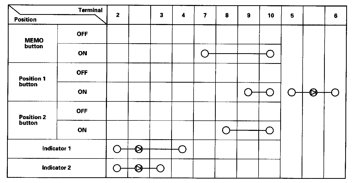 4. Check for continuity between the terminals in each switch position according to the table.
