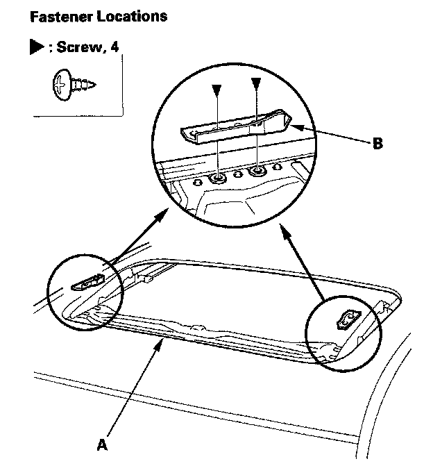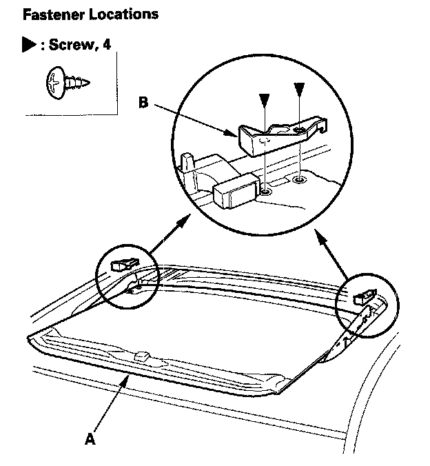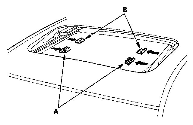 7. Remove both front sunshade base sliders (A) and both rear sunshade base sliders (B).