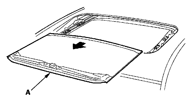 4. While lifting the front portion of the sunshade (A), move the sunshade forward until you can see both sunshade rear hooks (B). Do not damage the sunshade and hooks.