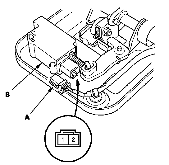 2. Disconnect the 2P connector (A) from the headrest actuator (B).