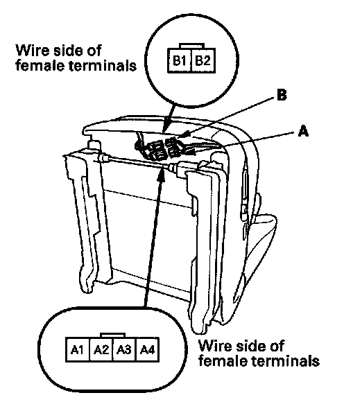 3. Check for continuity between the B1 and B2 terminals of the seat-back heater 2P connector. There should be continuity.