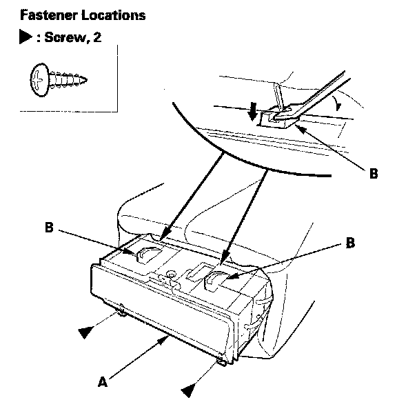 2. Remove the screws, then pull out on the beverage holder (A) to release the hooks (B).