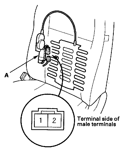 2. Disconnect the 2P connector from the lumbar support motor (A).