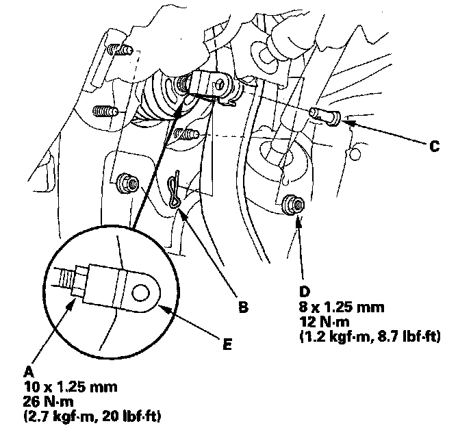 4. Loosen the yoke nut (A), then remove the lock pin (B) and the joint pin (C).