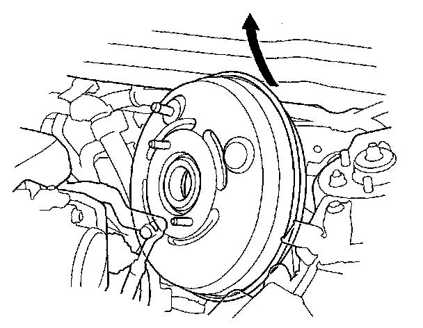 7. Remove the brake booster upward from the engine compartment.