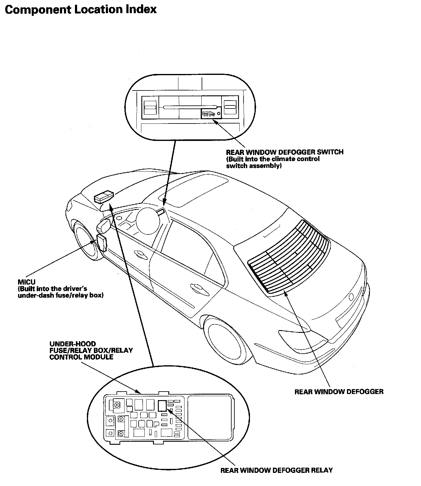 Rear Window Defogger Component Location Index: