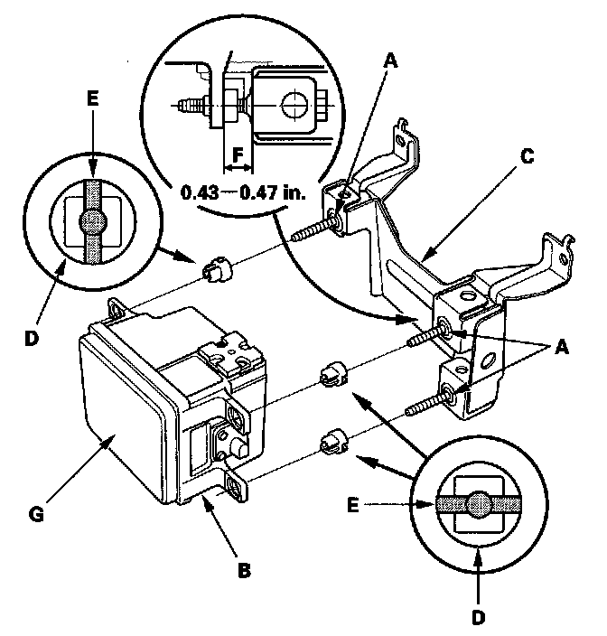 - If you disassemble the main bracket, always use new screw grommets (D).