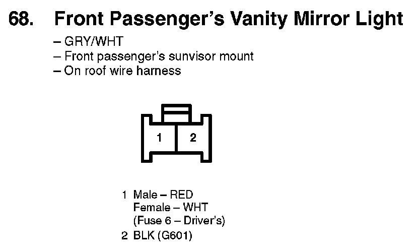 68. Front Passenger's Vanity Mirror Light:
